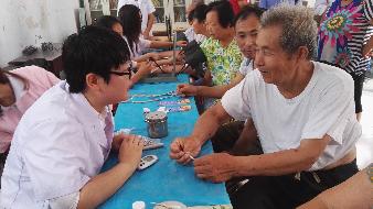 实践活动的最后一站是新乡县丁固城村,由于在前一天村大队就已经通过大喇叭进行了广播,我们服务队还没有到达村民就早早地排队等候。当车一到站,大家齐心协力一起动手拉条幅、摆展台,很快把场地布置好进行各项检查服务,老百姓的脸上洋溢着开心地笑容,服务队员们看到村民充满期盼和渴望的眼神,忘记了几天来的辛苦与疲惫又精神抖擞地投入到活动中。看着村民们挽起的裹着泥巴的裤腿,闻着他们满身刺鼻的汗水味,抚摸着他们斑驳的手上厚厚地老茧,这一些没有让我们的志愿者逃避和退缩,他们笑容更加灿烂,他们的解答更加耐心,他们服务的检查更加细致,他们的热情更加高涨,这时,他们才真正体会到此次活动价值和意义所在。