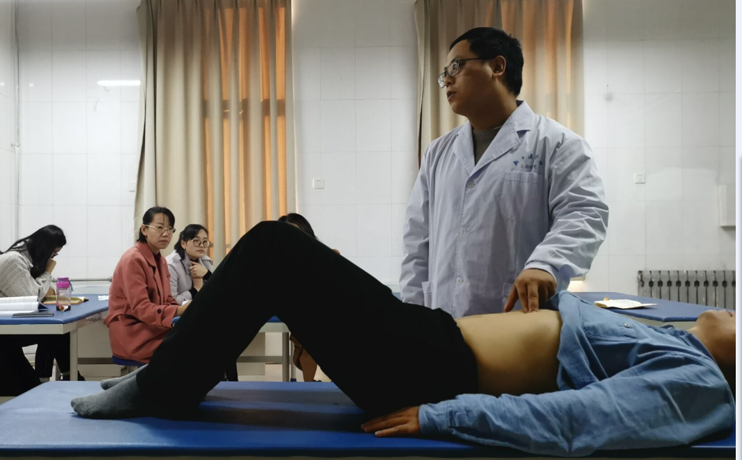 李瑞元主要从视、触两方面对腹部检查进行了讲授,并重点讲解了肝脏触诊、脾脏触诊手法及注意事项。李老师授课重点突出,条理清晰,操作手法标准规范,且幽默风趣,营造了良好的学习氛围。