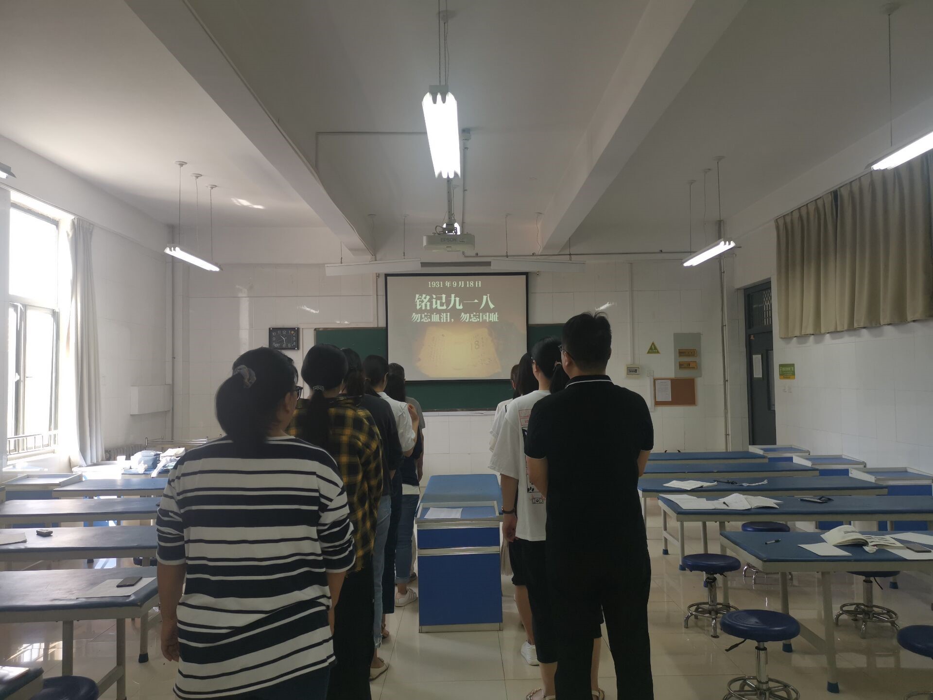 918日上午,诊断学教研室第3次青年教师预试讲活动在问学楼第一实验室如期开展,教研室全体教师和教辅参加;今日,恰逢“九一八”事变89周年纪念日,教研室全体人员为纪念革命先烈,进行肃立默哀,缅怀逝者活动,提醒我们牢记历史,勿忘国耻,警钟长鸣。
