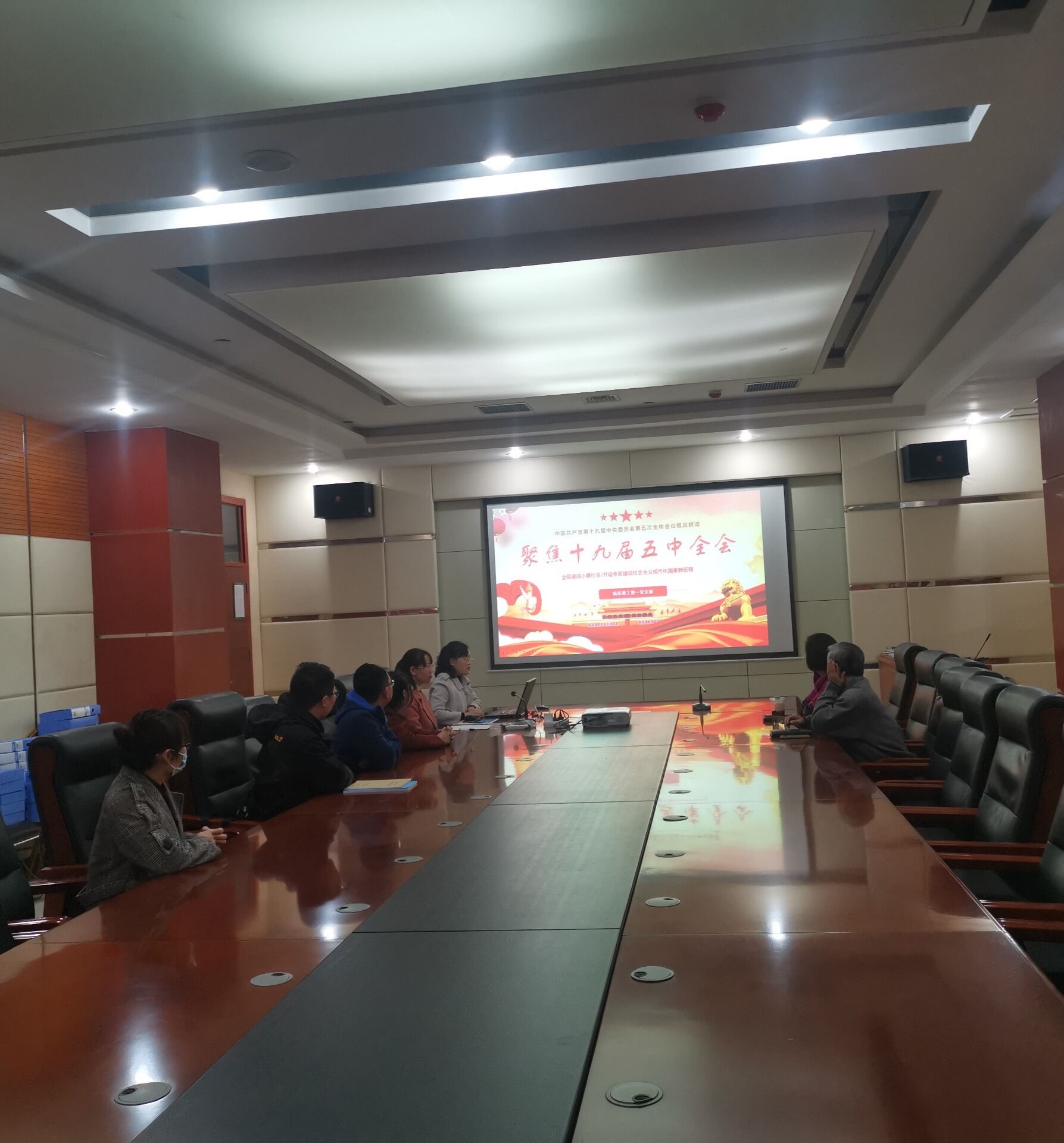 11月10日,临床教工第一支部在综合楼二楼会议室召开党员大会,深入学习十九届五中全会精神。