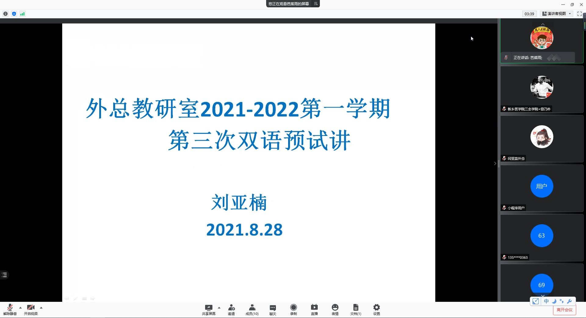 8月28日上午,外总教研室开展第4次线上集体备课及第3次双语预试讲活动,本次活动由外总教研室副主任朱光举主持,外总全体教师参加。