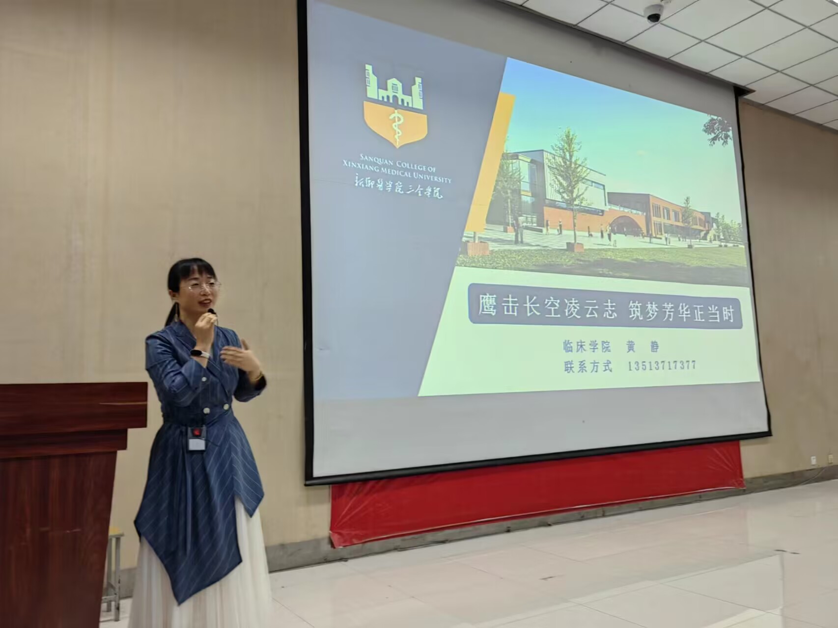鹰击长空凌云志筑梦芳华正当时。临床学院黄静老师从心理学的角度向同学们讲授“开学第一课”。她从“我要啥?”提出了要确定学习与人生的目标,从“我有啥?”帮助同学们进行财富大盘点,分析自己目前学习与生活的资源,从“我干啥?”帮助同学们把梦想与目标落实到行动中。对学生中普遍存在的“焦虑”“拖延”这两个问题,帮助大家找到最有效的解决方法。她用生动的事例告诉同学们“没有一件事情只有负面意义”,引导同学们关注事情正向、积极、乐观的一面,重新建构生活,为实现梦想而努力。