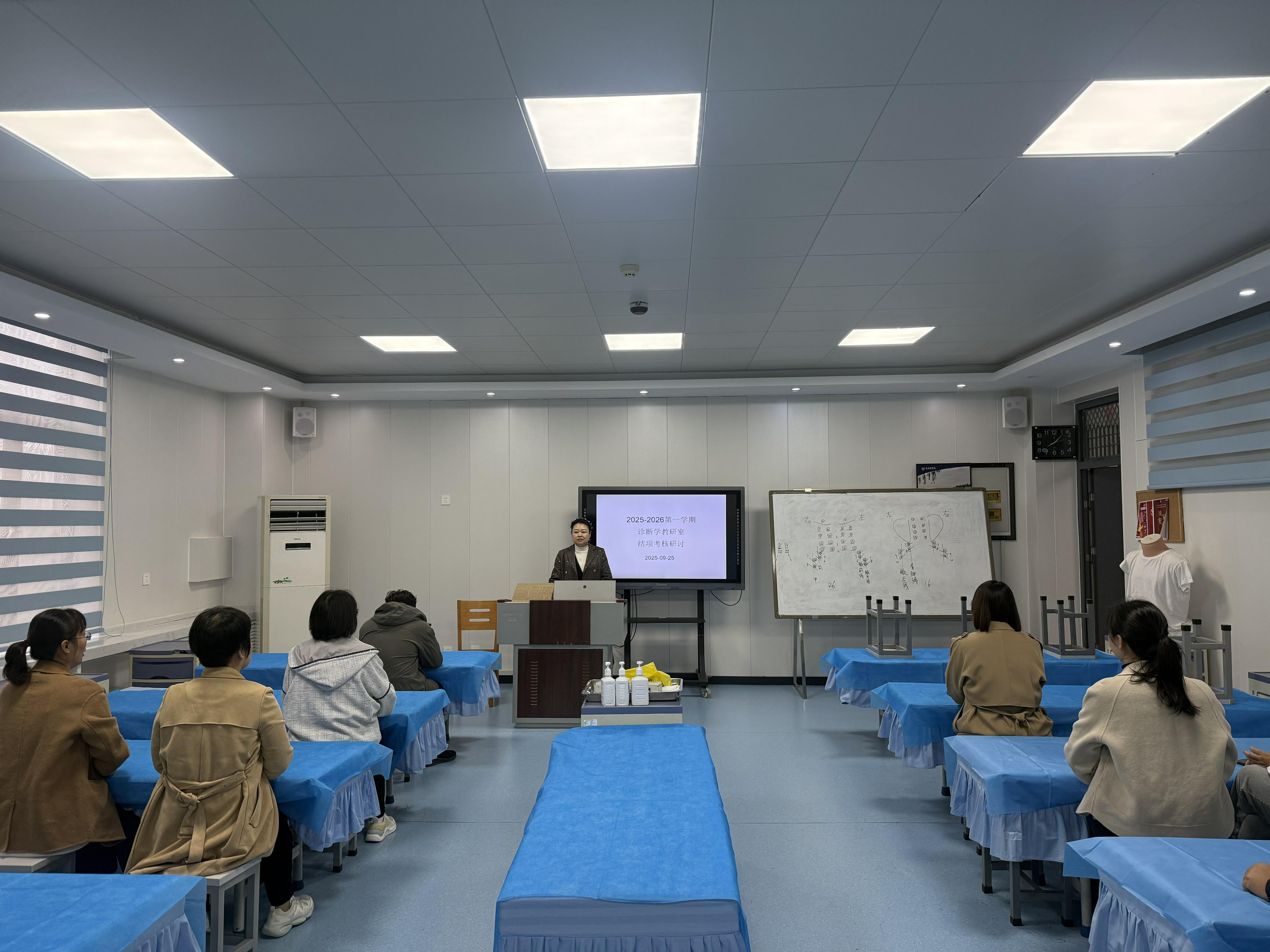 9月25日上午,诊断学教研室在问学楼4楼第四实验室召开2025-2026学年第一学期教学结项考核研讨会,旨在为后续教学优化指明方向。活动由教研室副主任谢静主持,全体带课教师参与。