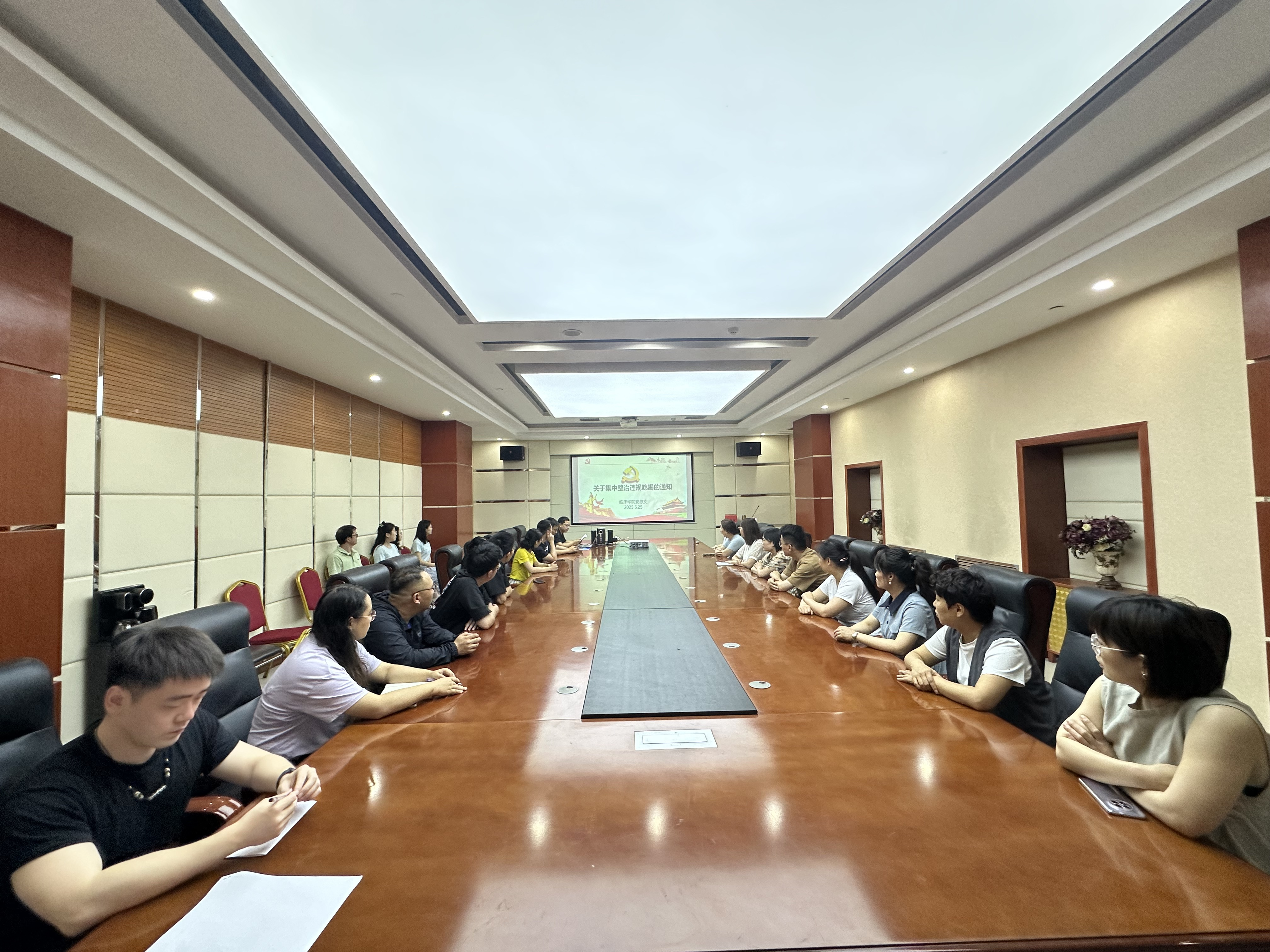 为深入贯彻落实中央八项规定精神,进一步加强作风建设,严肃整治违规吃喝问题,营造风清气正的校园环境,临床学院于6月25日组织召开集中整治违规吃喝工作部署会。学院全体党员参加会议。会议由学院党委书...